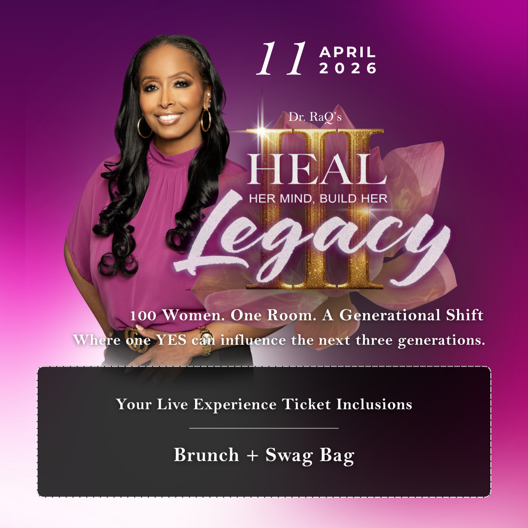 Join Dr. RaQ on April 11 for an empowering experience designed to guide you through deep healing, restore your inner strength, and help you step into the legacy you were born to create.